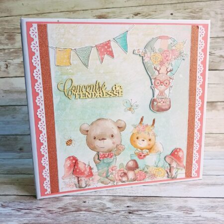 Il est réalisé avec des papiers de blocs venant de chez action et les embellissements de la collection Greenery Invitation de chez Craft O Clock.